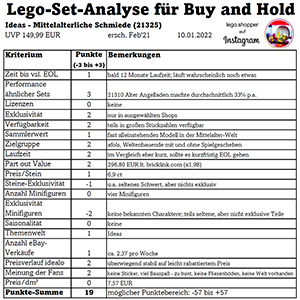 Analyse für: LEGO Ideas 21325 Mittelalterliche Schmiede
